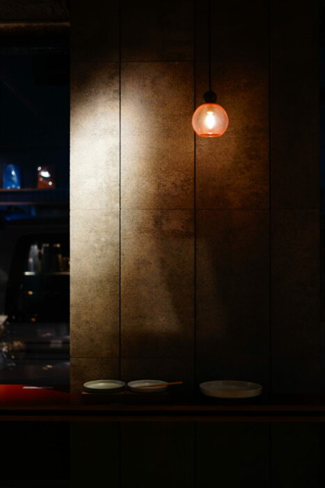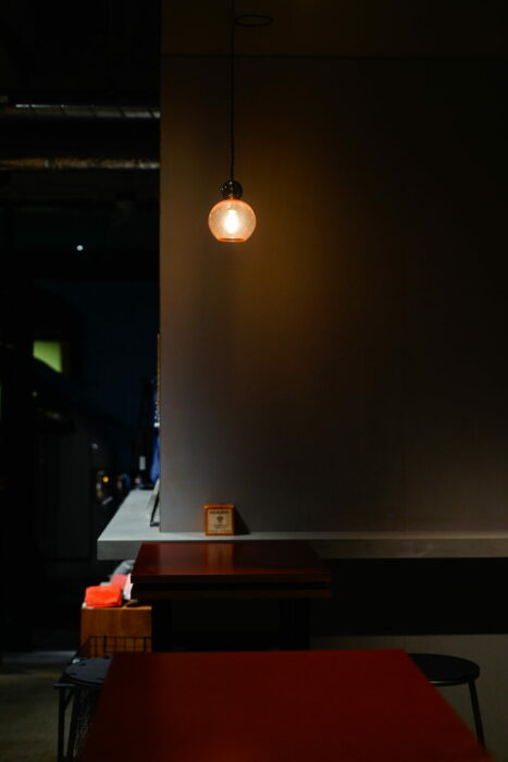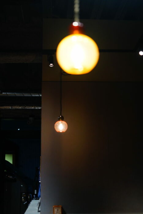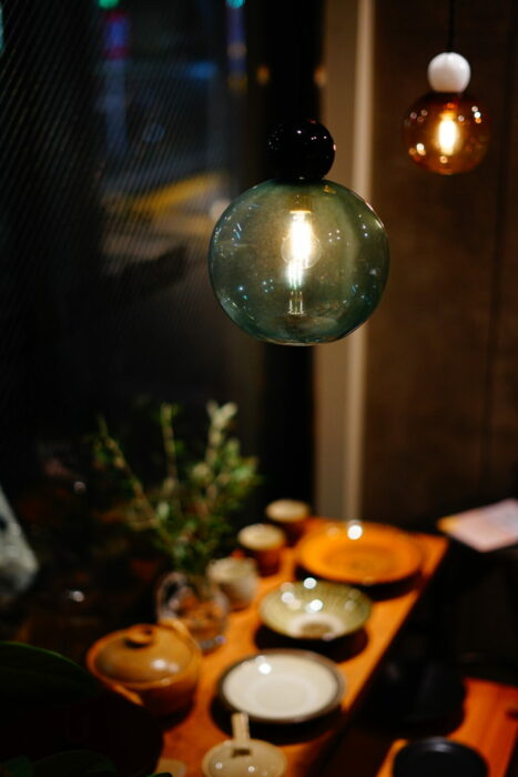 都内カフェの照明 yoiyoin 吹きガラスのペンダントライト[展示例]